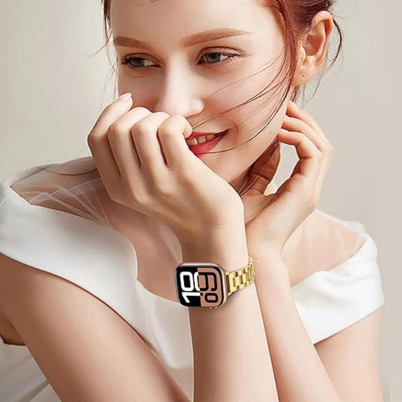 【対応機種】Apple Watch Series 10 42mm、Series 9/Series 8/Series 7 (41mm)、SE 2022/SE 2020/Series 6/Series 5/Series 4 (40mm)、Series 3/Series 2/Series 1 (38mm) と互換性のある薄い金属バンド。手首のサイズは6.2インチから8.7インチ(155mmから221mm)まで対応します。ストラップの長さ:190mm(Apple Watchを除く)iwatch の背面に