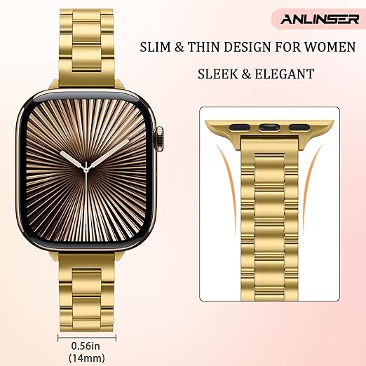 Anlinser 超薄型ストラップ〜との互換性ありアップルウォッチ バンド 42mm 41mm 40mm 38mm, ファッショナブルでキュートなメタル女性 Apple Watch バンド iWatch シリーズ10 9 8 7 6 5 4 3 2 1 SE用 (金) a