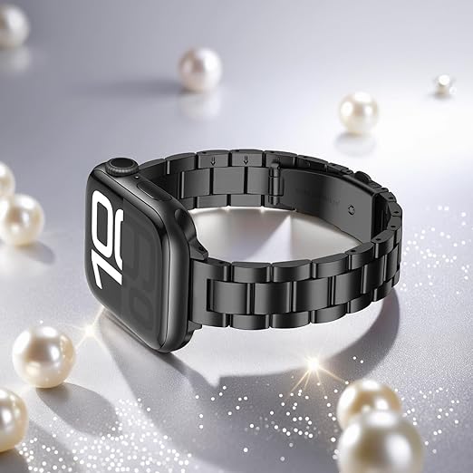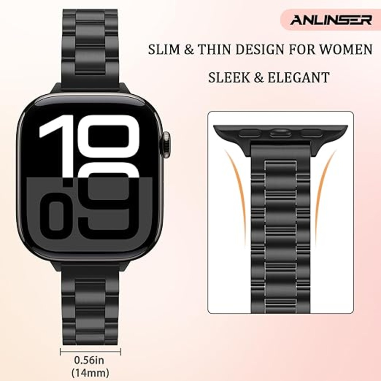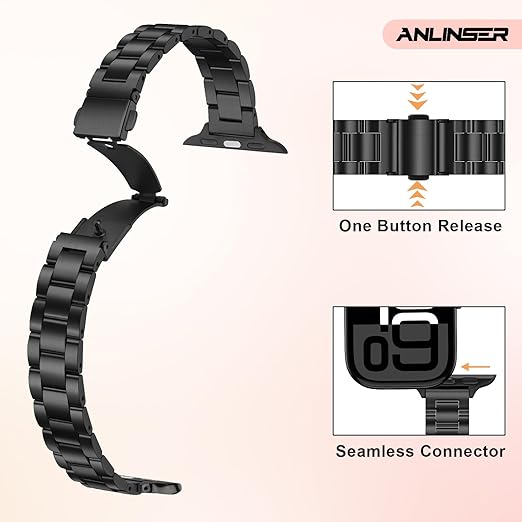 Anlinser 超薄型ストラップ〜との互換性ありアップルウォッチ バンド 49mm 46mm 45mm 44mm 42mm, ファッショナブルでキュートなメタル女性 Apple Watch バンド iWatch Ultra 2シリーズ10 9 8 7 6 5 4 3 2 1 SE用 (黒) a