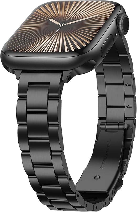 【対応機種】Apple Watch Ultra 2/Ultra 49mm、Apple Watch Series 10 46mm、Series 9/Series 8/Series 7 (45mm)、SE 2022/SE 2020/Series 6/Series 5/Series 4 (44mm)、Series 3/Series 2/Series 1 (42mm) と互換性のある薄型メタルバンド。6.2インチから8.7インチ (161mm-225mm) の手首に適しています。ストラップの長さ: 19