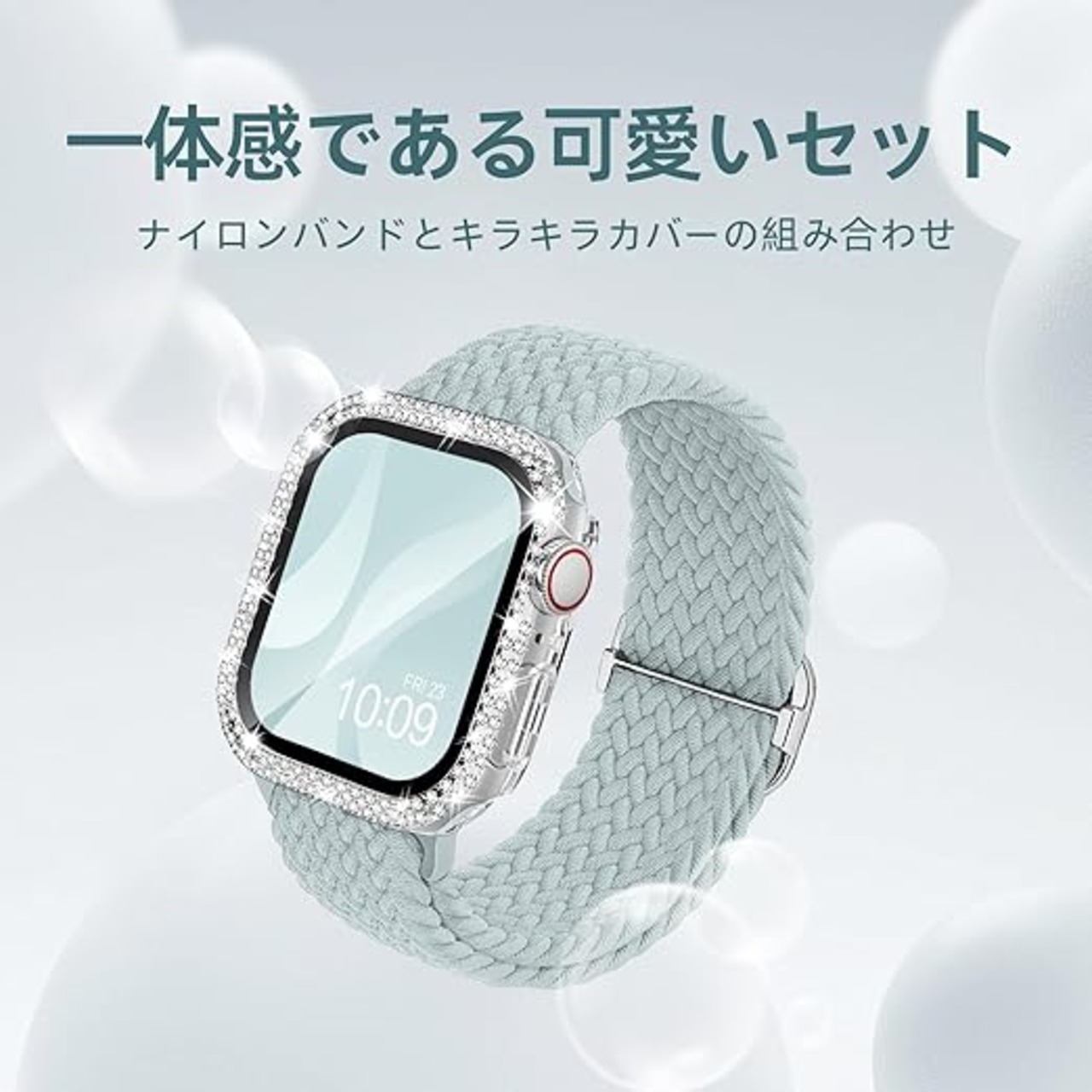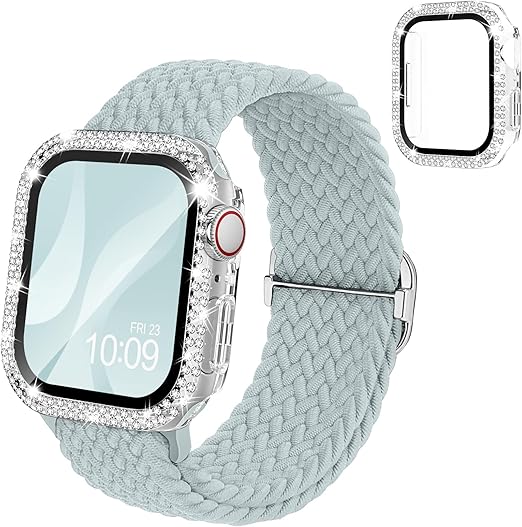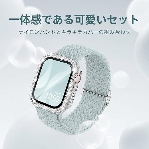 [Missair] コンパチブル Apple Watch バンド ナイロン アップルウォッチ バンド 編み込み ゴム Apple Watch キラキラ カバー付き ダイヤモンド 互換用のApple Watch バンドとケース 一体型 全面保護 オシャレ レディース (Series6/5/4/SE 40mm) a