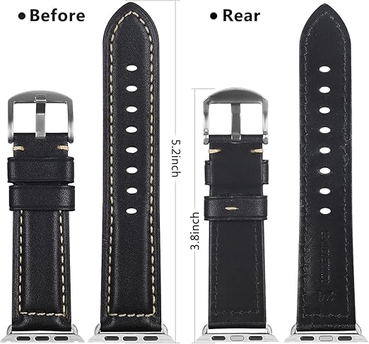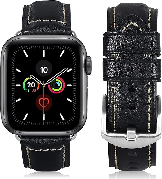 [HUAFIY] Apple Watch 用バンド42mm 44mm 45mm46mm49mm 本革 交換ベルト Apple Watchシリーズ 10/9/8/7/6/5/4/3/2/1/SE,ultra対応 (42mm44mm45mm46mm49mm対応, ヴィンテージブラック/シルバーボタン) a