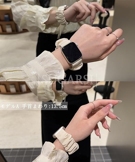 【女性向け・かわいい】ふんわり可愛いシュシュ風デザインで、ファッション感覚でAppleWatchを変身!さらに、シュシュタイプのバンドだけでなく、同じ柄のシュシュ付属して、統一感のあっておしゃれ。