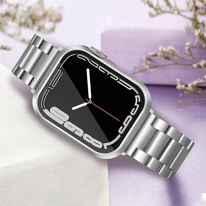 【高級感が溢れるデザイン&装着が簡単】 Apple Watchガラスフィルム+保護カバーの融合された革新的な一体型デザイン。取付け道具不要、本体の上から嵌めるだけで楽に装着できます。従来のフィルム貼りの手間も
