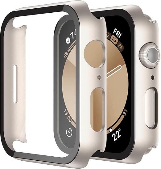 ULOE For Apple Watch Series 6 SE SE2 Series 5 Series 4 44mm ケース, 超薄型 PC+ガラス素材 全面保護 高透過率 装着簡単 耐衝撃 指紋防止 傷防止 対応アップルウォッチ 6/SE/SE2/5/4 44mmカバー(スターライト) a