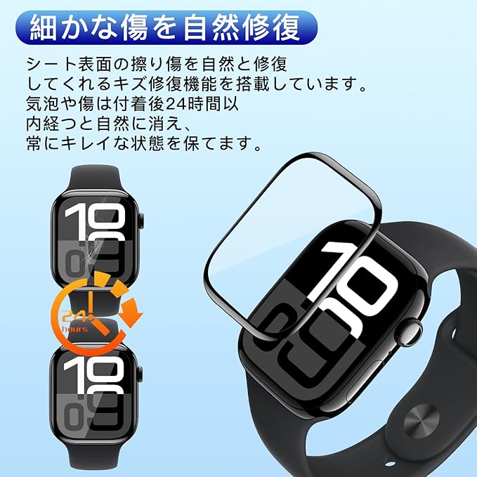 【超高品質&超薄型素材】このスマートウォッチ用ガラスフィルムは 対応 apple watch series 10 42mm 非常に柔らかいTPUをしており複合材 炭素繊維を採用、画面の端まで保護することができ超薄型0.26mm、スクリーンをタップする際にフィルムなしの場合よりもスムーズにスマートウォッチを操作できます。