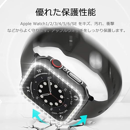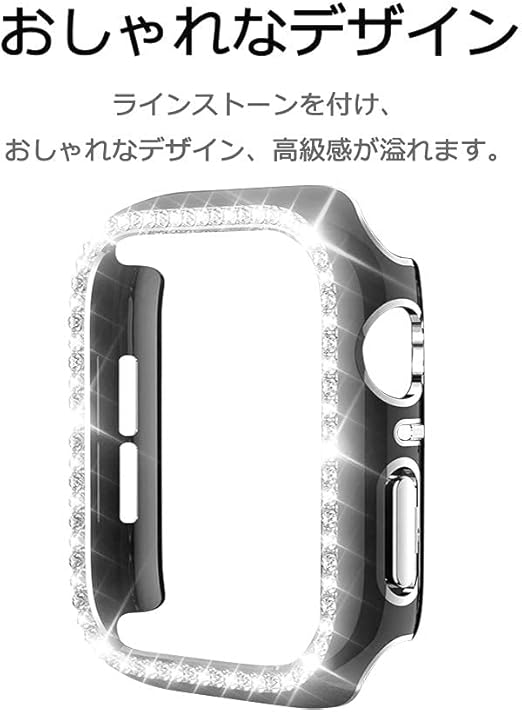 【高级な素材|おしゃれなデザイン】品質の高いPC材料を採用して、放熱性に優れ、質感、手触りが一番です。アップルウォッチをしっかり保護します。ラインストーンを付け、おしゃれなデザイン、高級感が溢れます。