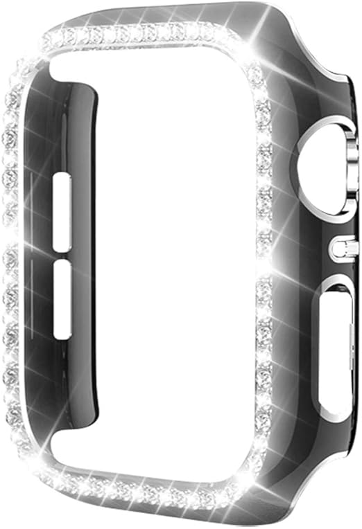 Miimall 対応Apple Watch4/5/6/SE/SE2 保護ケース 40mm アップルウォッチ 4 専用カバー 傷防止 ラインストーン お洒落 キラキラ 超簿軽量 装着簡単 PC材質 Apple Watch 6 SE/SE2 保護バンパー(40mm|縁:シルバーxブラック) a