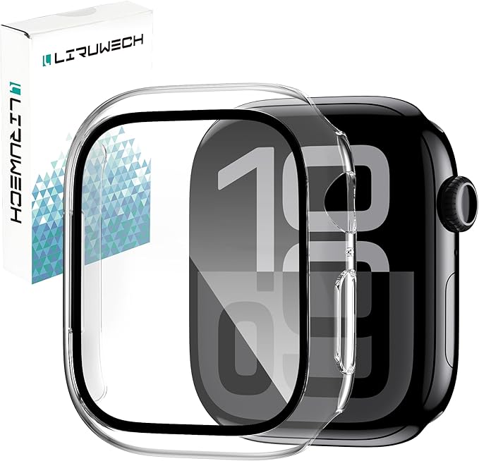 LIRUWECH for Apple Watch 10ケース 42mm アップルウォッチ10保護カバー ガラスフィルム 一体型 アップルウォッチ シリーズ10対応 PC素材 耐衝撃 タッチ感良好 衝撃吸収 防塵 Apple Watch 10アクセサリー Apple Watch 10 case 全面保護 高透過率 指紋防止 (42mm,クリア) a