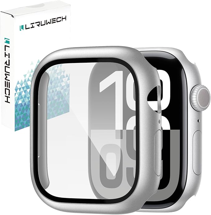 LIRUWECH for Apple Watch 10ケース 42mm アップルウォッチ10保護カバー ガラスフィルム 一体型 アップルウォッチ シリーズ10対応 PC素材 耐衝撃 タッチ感良好 衝撃吸収 防塵 Apple Watch 10アクセサリー Apple Watch 10 case 全面保護 高透過率 指紋防止 (42mm,シルバー) a