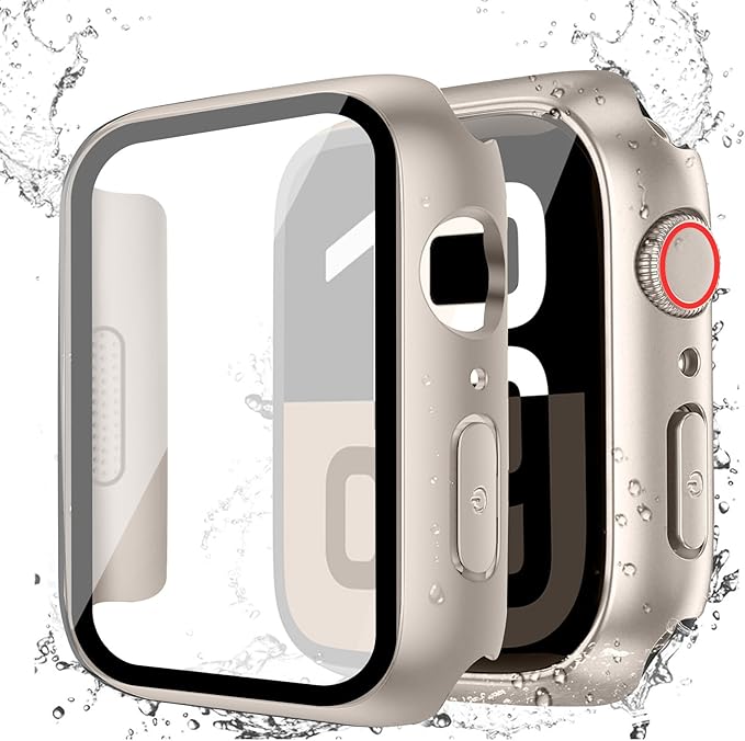 ?ATTKAI for アップルウォッチ カバー Series 10/9/8/7/6/5/4/SE2/SE for Apple Watch カバー 防水 一体型 PC素材 硬度9H強化ガラス 高透過率 指紋防止 超薄型 耐衝撃 全面保護 for Apple Watch ケース (41mm,スターライト) a
