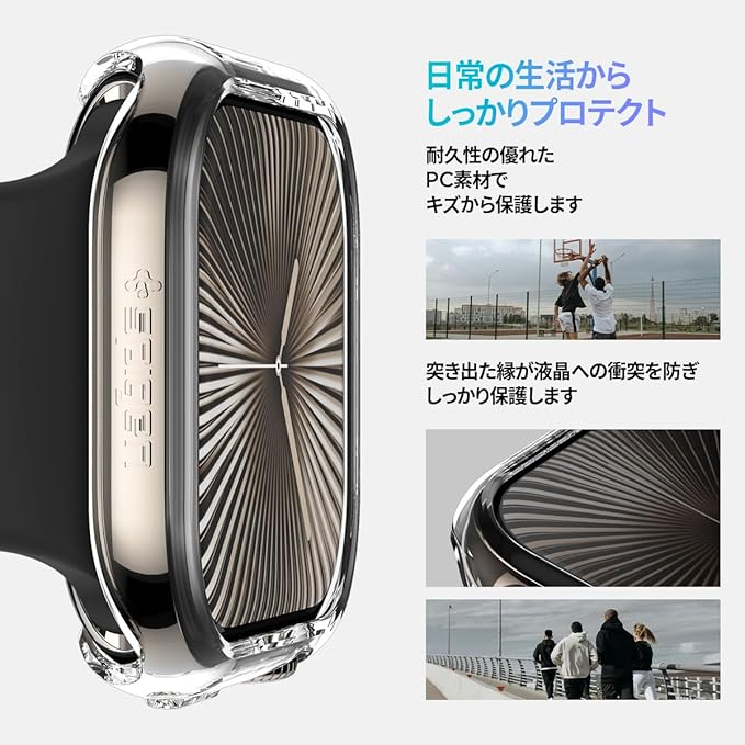 【隠れたこだわりと、細かな配慮】被せるデザインにしたことで、「バンドの交換」「ケースの着脱」を簡単にし、また、ソフトケースのような変色やひっかかるような肌触りもなく、指触りの良い触り心地になっています。