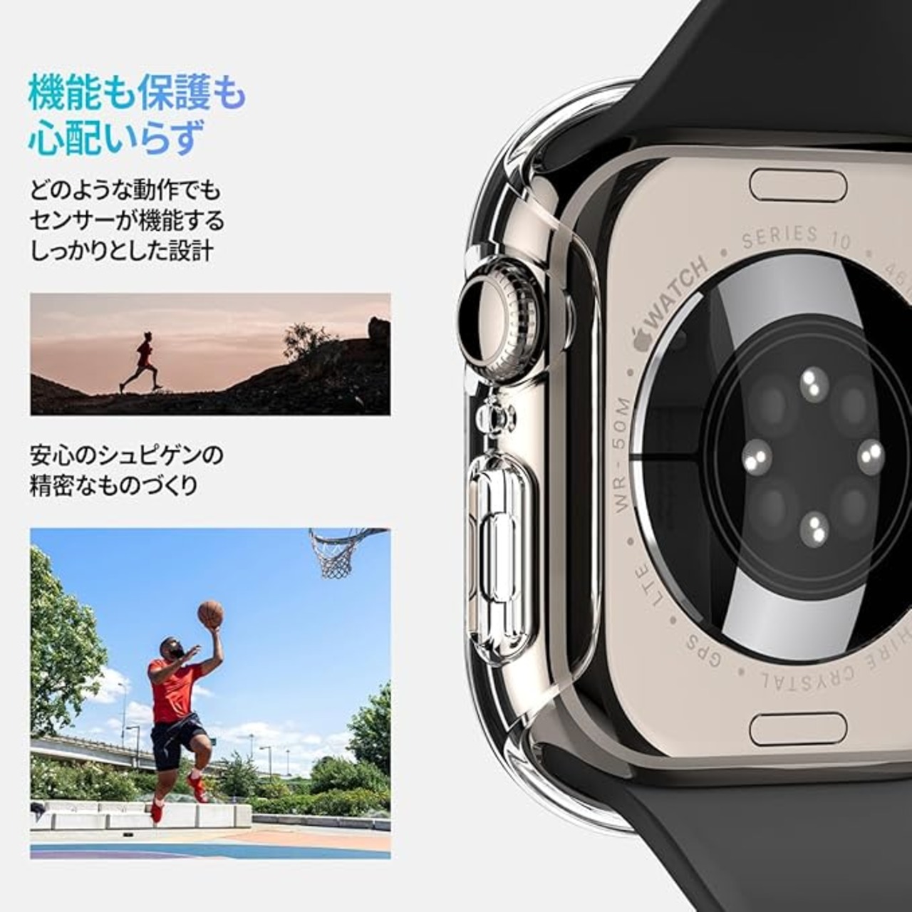 Spigen Apple Watch 10 ケース 46mm AppleWatch10 対応 落下 衝撃 吸収 簡単な取り付け 超薄型 シンプル スリム 軽量 保護カバー アップルウォッチケース シン・フィット ACS08602 (クリスタル・クリア) a