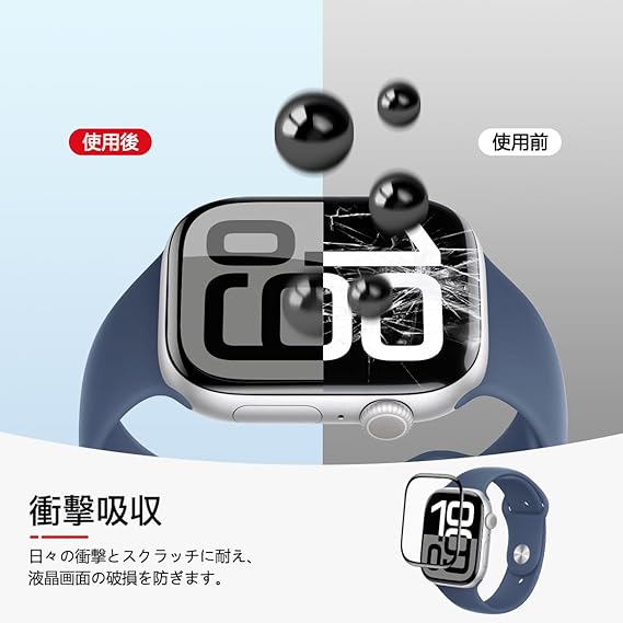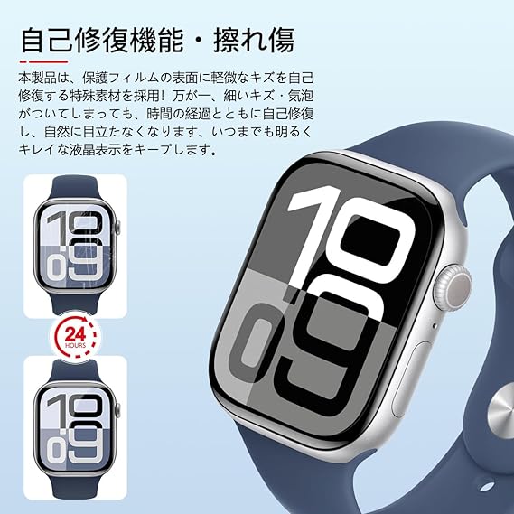 AQXNG 対応 Apple Watch series 10 46mm フィルム 画面保護フィルム 【3枚セット】 アップルウォッチ 10 46mm 用の 保護フィルム 柔軟なTPU製 炭素繊維 3D曲面 カバー 24時間自動修復技術 衝撃吸収 高透過率 高感度タッチ 指紋防止 撥油性 疎水性 自動吸着 気泡ゼロ 貼り付け簡単 a
