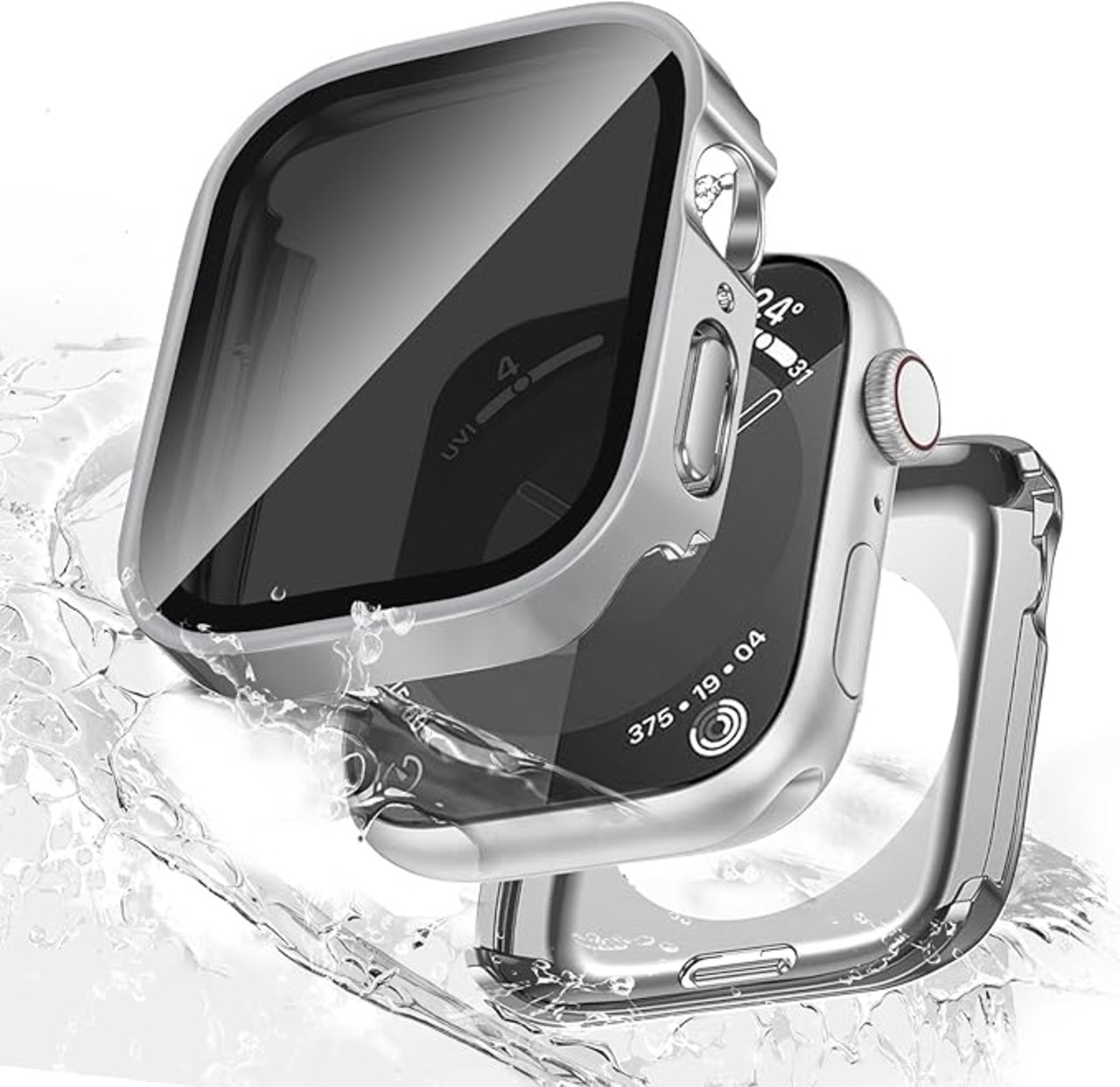 【2in1 防水の覗き見防止設計】LISAMER 対応 アップルウォッチ カバー Series 6 5 4 SE SE第二世代 40mm 対応 Apple Watch カバー 一体型 新デザイン 超薄型 PC+ガラス素材 全面保護 装着簡単 高透過率 高耐久 耐衝撃 Apple Watch用 ケース 40mm スシルバー a