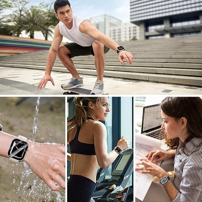 【全面保護カバー】:このApple Watch ケースの液晶保護フィルムは硬度9Hの強化ガラスを採用し、アップルウォッチ カバーのフレームはPC(ポリカーボネート)素材で構成され