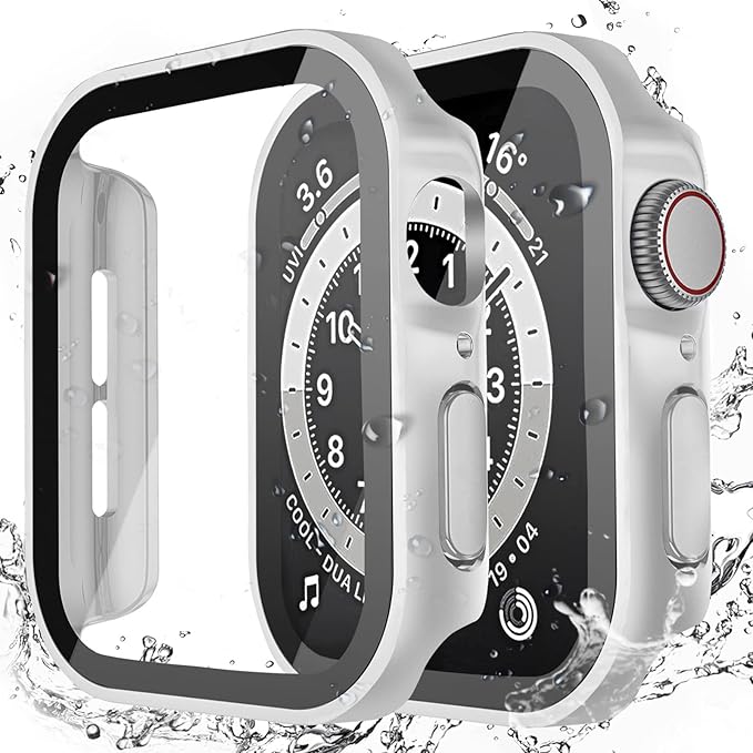 LISAMER 対応 Apple Watch ケース Series 10/9/8/SE/7/6/5/4 40mm アップルウォッチ用 ケース 防水 一体型 新デザイン 3D直角エッジ 超薄型 PC+ガラス素材 高透過率 対応 Apple Watch カバー 全面保護 装着簡単 高耐久 耐衝撃 シルバー a