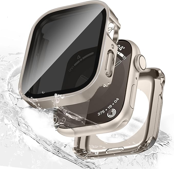 【360°全面保護&覗き見防止】:このアップルウォッチ カバーの液晶保護フィルムは硬度9Hの強化ガラスを採用し、Apple Watch カバーのフレームはPC(ポリカーボネート)素材で構成されており、耐傷性、耐衝撃性に優れ、アップルウォッチへの落下