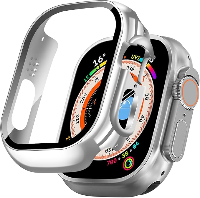 【2枚】TEMEDO 対応 Apple Watch ケース Ultra 2/1 アップルウォッチ カバー PC素材 メッキ加工 Apple Watch カバー 全面保護 二重構造 アップルウォッチ ケース ガラスフィルム 一体型 高耐久 高透過率 装着簡?(49mm,光沢のシルバー) a