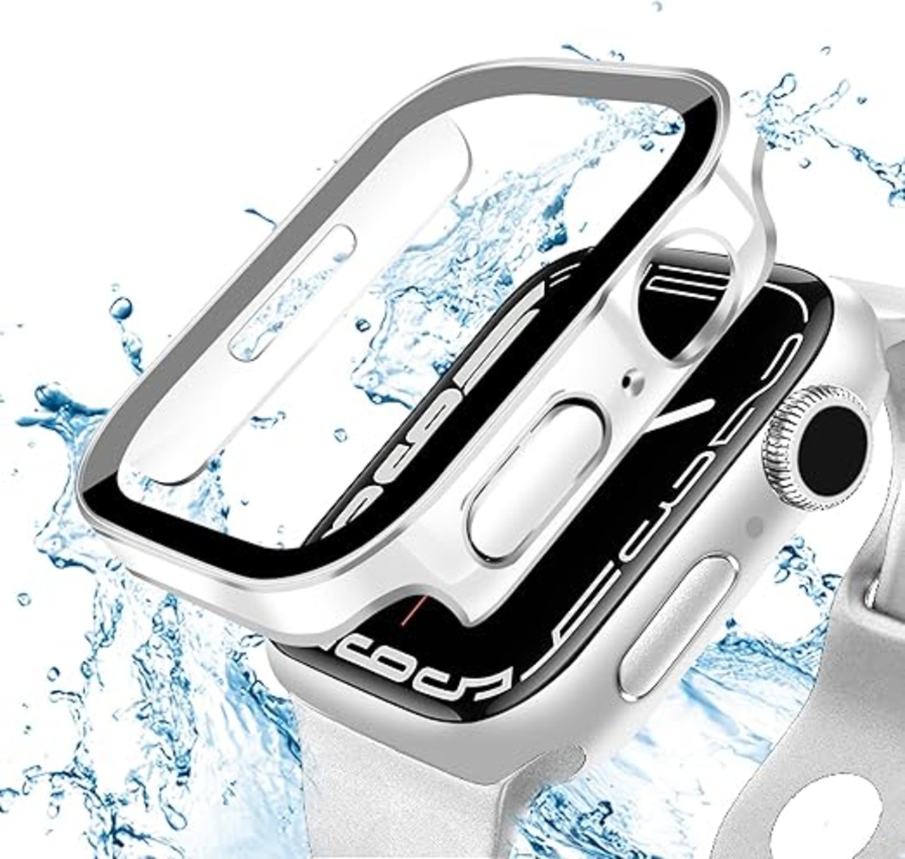 ANYOI 対応 Apple Watch ケース 45mm 防水ケース 3D直角エッジデザイン メッキ加工 アップルウォッチ カバー ガラスフィルム アップルウォッチ ケース 耐衝撃 apple watch カバー 全面保護 高透過率 Apple Watch Series 9/8/7 45mm アップルウォッチ9/8/7 45mm 対応 ホワイト/シルバー a