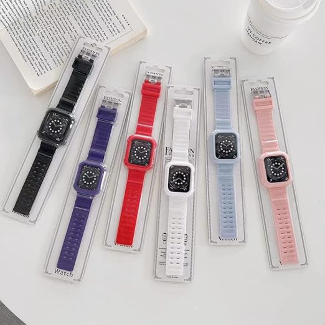 Apple Watch バンド アップルウォッチ 一体型 スポーツバンド ケース カバー 耐衝撃 PC TPU ソフト 全面保護 iWatch Series SE/7/6/5/4/3/2/1 (42mm / 44mm /45mm 、38mm / 40mm /41mm) レディース・メンズ a