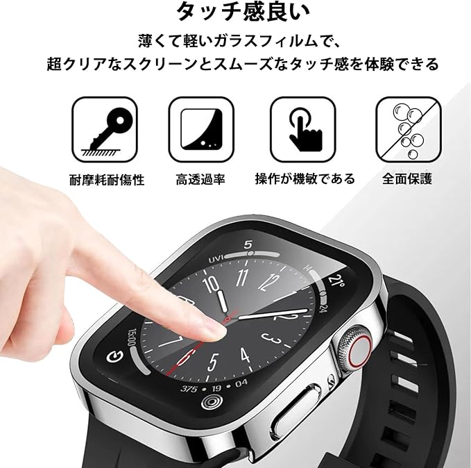 【防水・防塵ケース】内蔵されたシールでスクリーンへの浸水を防いで、何度もApple Watch ケースを外して水を拭き取る必要がありません。疎水性撥油性抜群の強化ガラス表面により、カバー面に水が溜まらず、シャワー、手洗い、発汗、運動、