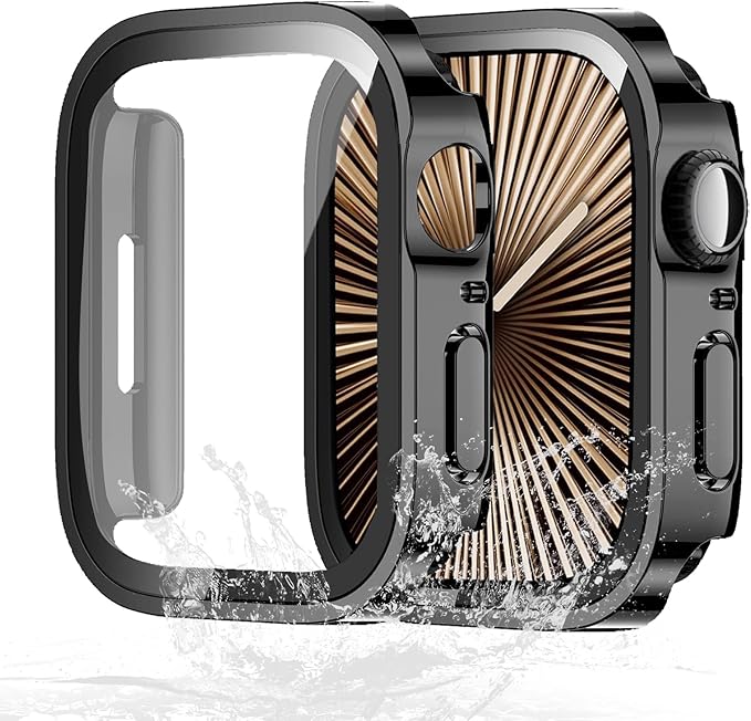 YAODLE Apple Watch Series 10 42mm カバー 防水 アップルウォッチ 防水 ケース 42mm アップルウォッチ10 カバー PC素材 カバー カバー ガラスフィルム一体型 全面保護 二重構造 防塵 日本旭硝子材 キズ防止 軽量(42mm,光沢のブラック) a