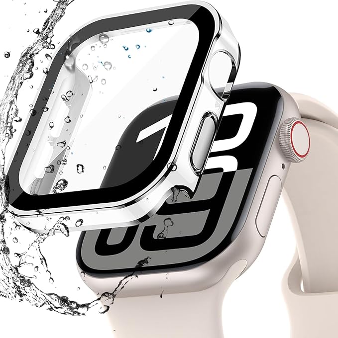 AIYYXX Apple Watch 10 ケース 42mm 対応 アップルウォッチ10 42mm 防水 一体型 新デザイン 3D直角エッジ 超薄型 IP68 防水ケース PC+ガラス素材 高透過率 アップルウォッチ カバー 42mm キズ防止 簡単に取り付け・取 全面保護 アアップルウォッチ10 防水カバー 42mm (42mm,光沢防水のホワイト&シルバー) a