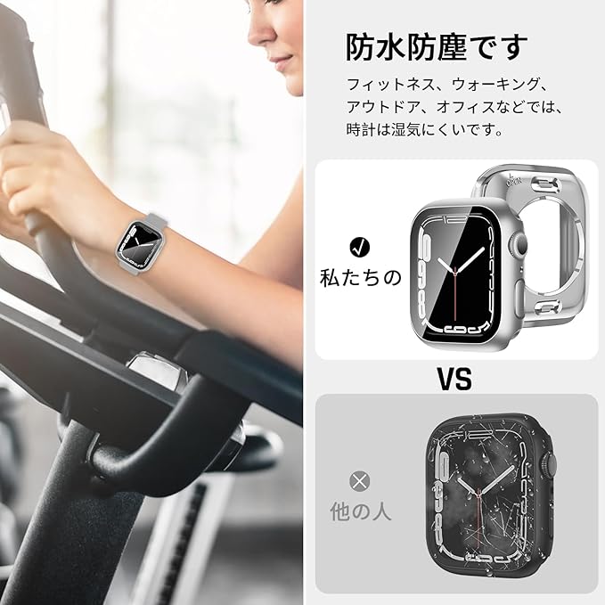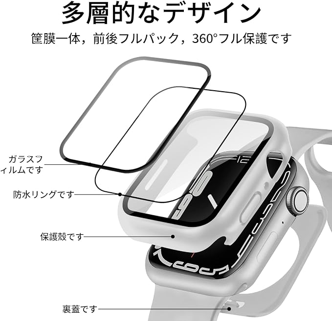 BELIYO Apple Watch ケース 45mm 対応 アップルウォッチ カバー 防水 一体型 360 Apple Watch カバー 全面保護 二重構造 アップルウォッチ ケース PC素材 日本旭硝子材 キズ防止 軽量 強化ガラス Apple Watch Series 9/8/7 アップルウォッチ9/8/7 対応(45mm,シルバー) a