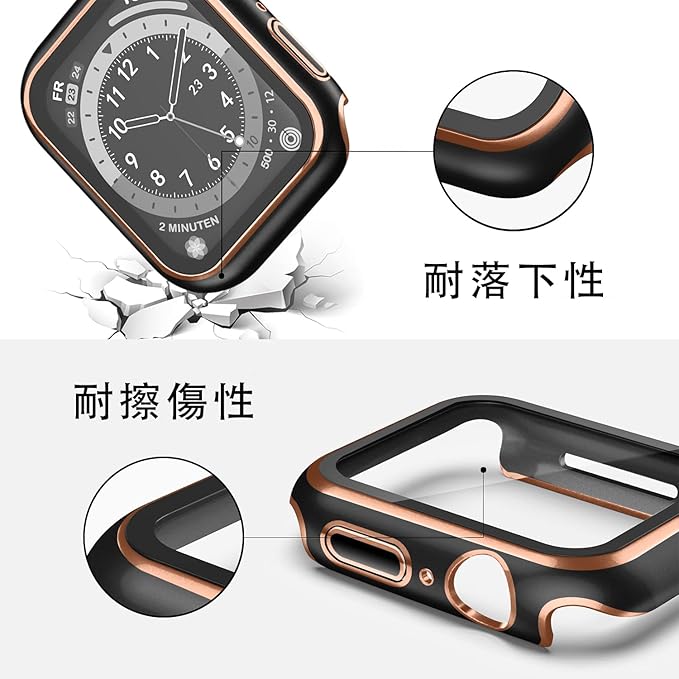 Puptoya for アップルウォッチ 防水 カバー 45mm Apple Watch用 ケース Series 9 8 7 あっぷるうぉっち 保護 バンパー タッチ感度が高い 耐衝撃 ガラスフィルム 装着簡単 iWatch 45mm ブラック/ローズゴールド a
