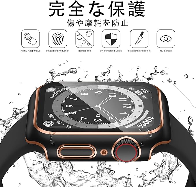 【防水&防塵】内蔵されたシールでスクリーンへの浸水を防いで、何度もApple Watch ケースを外して水を拭き取る必要がありません。 シャワー、手洗い、汗、雨、スポーツなどの日常着に最適です。 強化ガラス表面に施された撥油コーティングにより、アップル