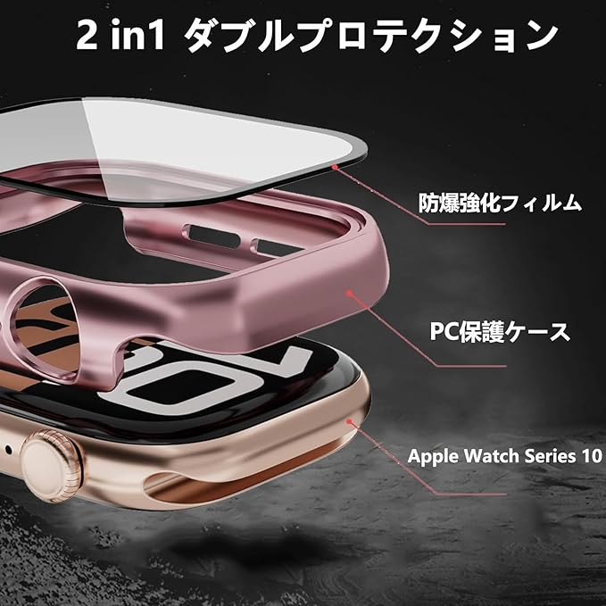 AIYYXX For apple watch 10 ケース 46mm 42mm ガラスフィルム+PCフレーム 一体型 アップルウォッチ10 カバー 46mm 42mm 対応 高透過率 キズ防止 指紋防止 簡単に取り付け・取 全面保護 appleウォッチカバー46mm 42mm(46mm,ローズゴールド) a