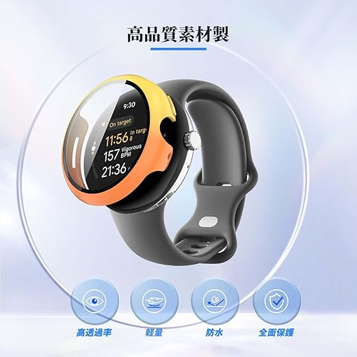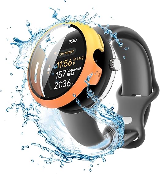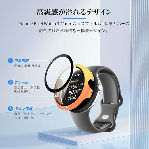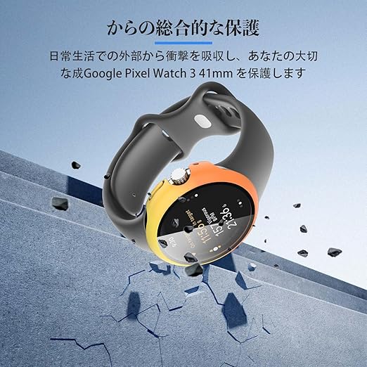 Google Pixel Watch 3 41mm / Pixel Watch 2 用 カバー ケース アップルウォッチ保護カバー ガラスフィルム 一体型 防水 防塵【HUKWIMO】 3D全面保護 指紋防止 HD高透過率 傷に強い 極薄 撥水撥油 反射低減 Google Pixel Watch 3 41mm / Pixel Watch 2 対応 (イエロー+オレンジ) a