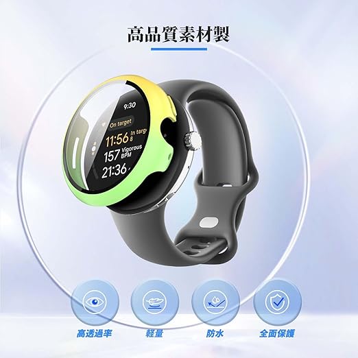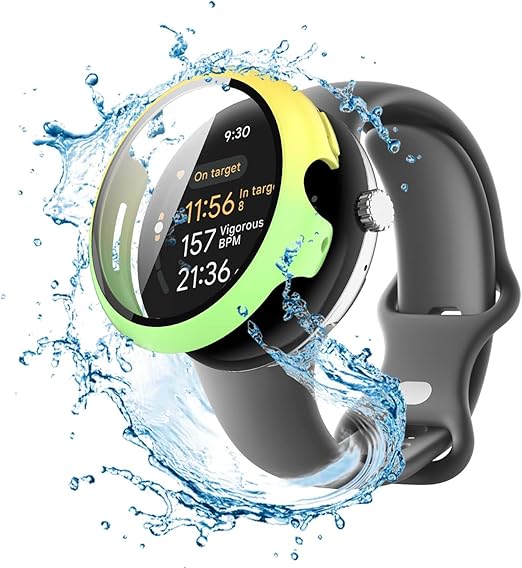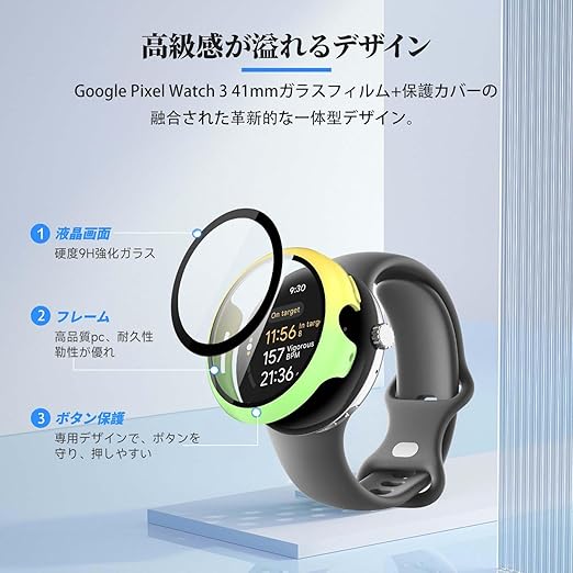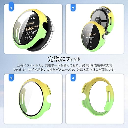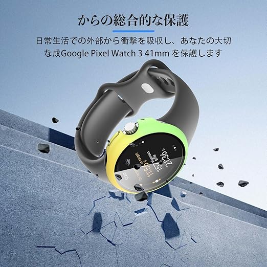 Google Pixel Watch 3 41mm / Pixel Watch 2 用 カバー ケース アップルウォッチ保護カバー ガラスフィルム 一体型 防水 防塵【HUKWIMO】 3D全面保護 指紋防止 HD高透過率 傷に強い 極薄 撥水撥油 反射低減 Google Pixel Watch 3 41mm / Pixel Watch 2 対応 (イエロー+グリーン) a