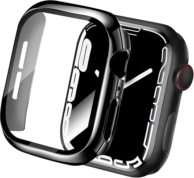【2024改良モデル】CABOBE 対応 アップルウォッチ カバー 40mm メッキ加工 アップルウォッチSE2/SE/6/5/4 ケース Apple Watch SE2/SE/6/5/4 ケース 対応 Apple Watch カバー ガラスフィルム 一体型 PC素材 耐衝撃 全面保護 対応 40mm ブラック a