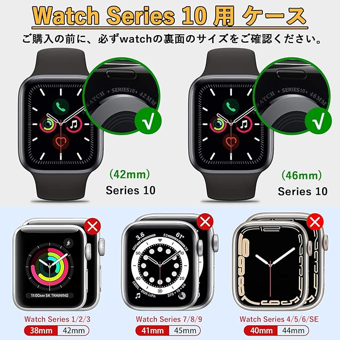 【対応機種】:「42mm」Watch Series 10 に対応しています。ご使用のモデルのサイズは本体裏面に刻印されていますので、ご確認の上、ご購入ください。