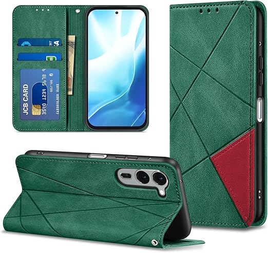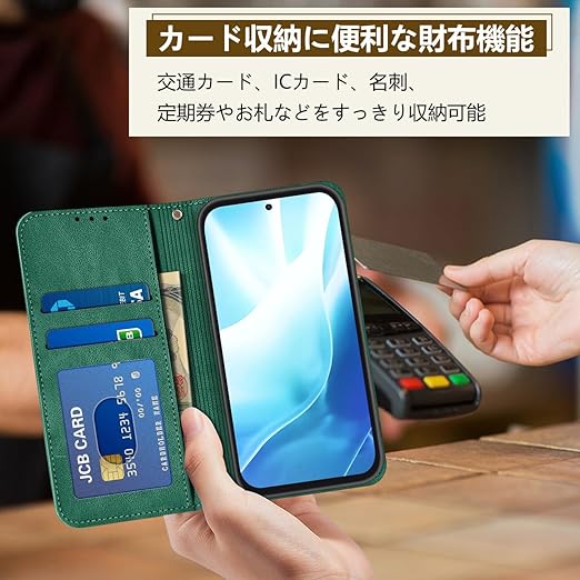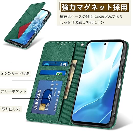 TCJ Arrows We2 Plus ケース F-51E 手帳型 スマホケース カードホルダー 横開き スタンド機能 動画視聴に便利 バンパー スマートフォンケース カード収納 case スマホカバー 高級レザー 財布型 スタンド機能 PUレザー フリップ スタンド 保護カバー 携帯ケース 耐衝撃 マグネット付き 上品 (グリーン) a