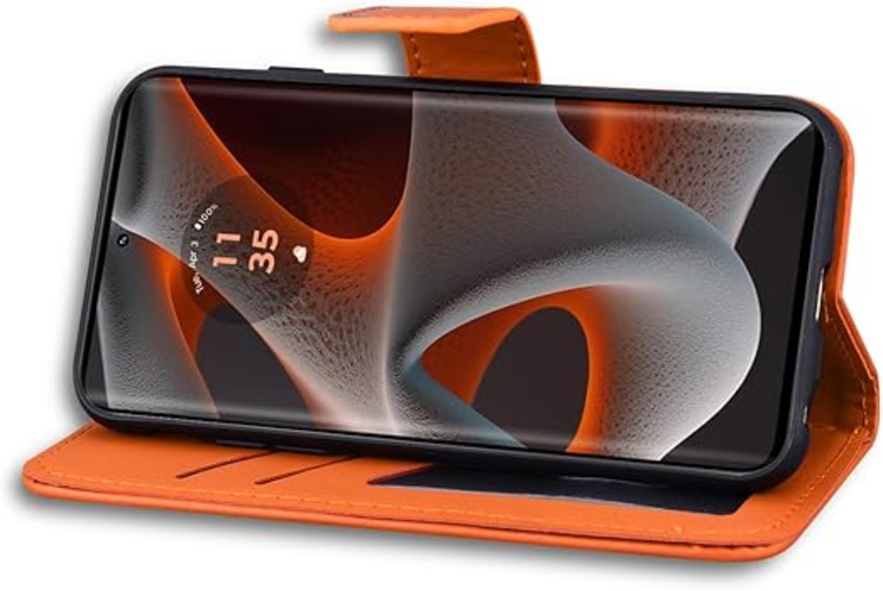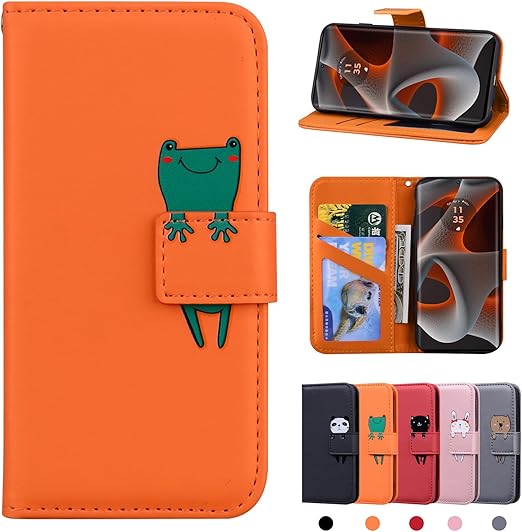 CASAFUNY Motorola Edge 50 Pro ケース 手帳型 お洒落 カバー motorola edge 50s pro ケース 手帳型 耐衝撃 PUレザー 携帯カバー モトローラ Edge50Pro ケース 軽量 モトローラ エッジ 50s プロ / 50 プロ 手帳ケース かわいい 動物柄 カバー おしゃれ カード収納 横置きスタンド機能 内蔵マグネット -オレンジ色のカエル a