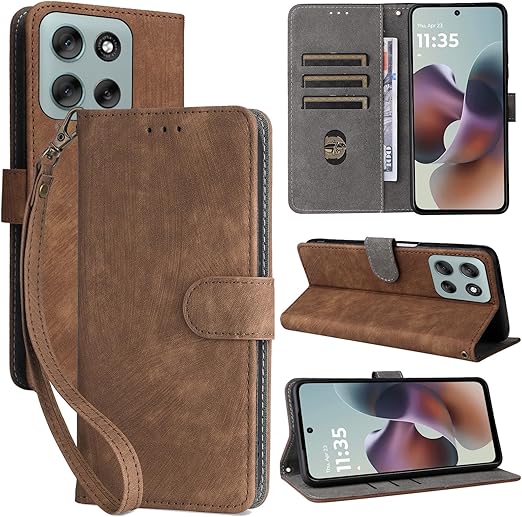 Motorola moto g 66j / moto g 66y / moto g56 用 ケース 手帳型 moto g66j / g66y / g56 用 カバー 財布型 【NOUKAJU】 カードポケット付き PUレザー 手触りが良い 落下防止 衝撃吸収 耐摩擦 全面保護 耐磁性RFID機能 マグネット式 カード収納 スタンド機能 軽量 薄型 ストラップ付き スマホケース (ブラウン) a