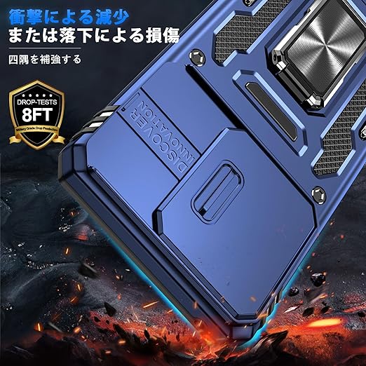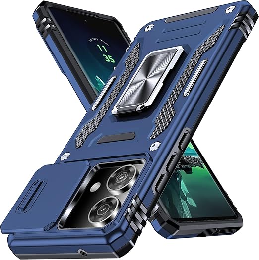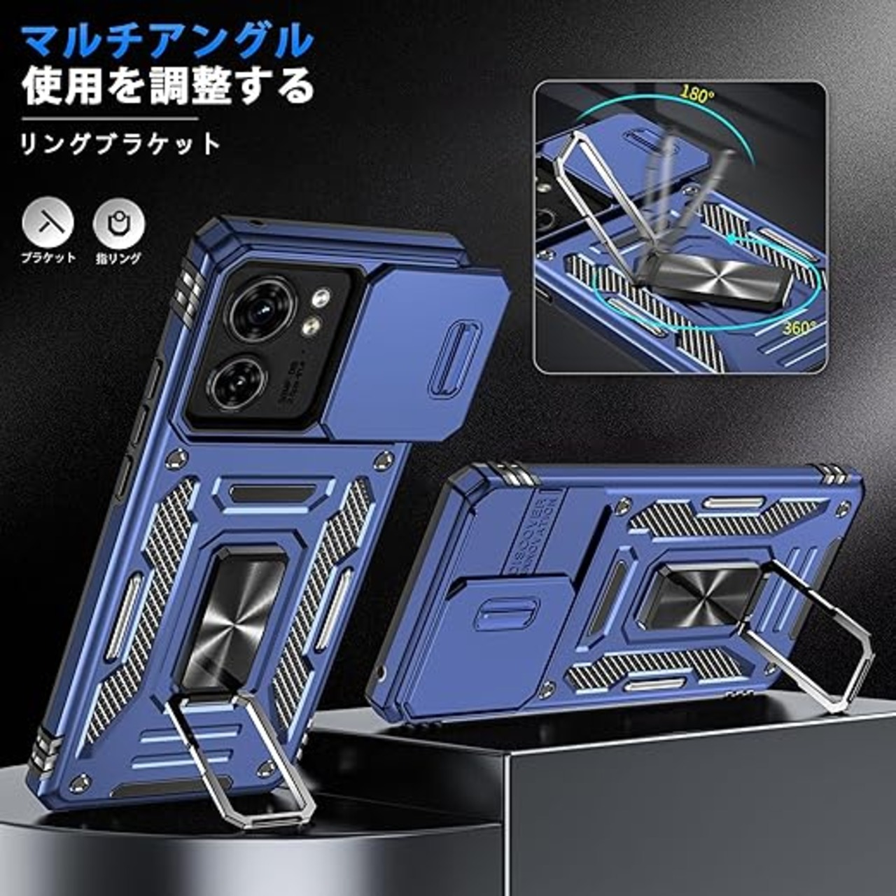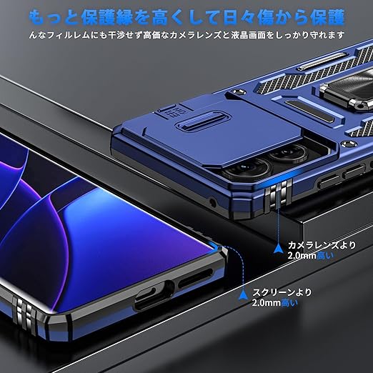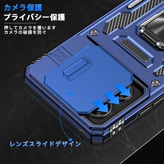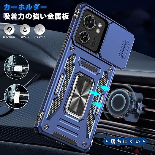 Motorola Edge 40 Neo 用 ケース リング付き スライド式カメラプロテクター 衝撃吸収 PC素材 スタンド機能 車載ホルダー対応 MIL規格認証 滑り止め・擦り傷防止 金属リング Edge 40 Neo 用 カバー 耐衝撃 横置き対応 人気 青 C92-edge 40n-03 a