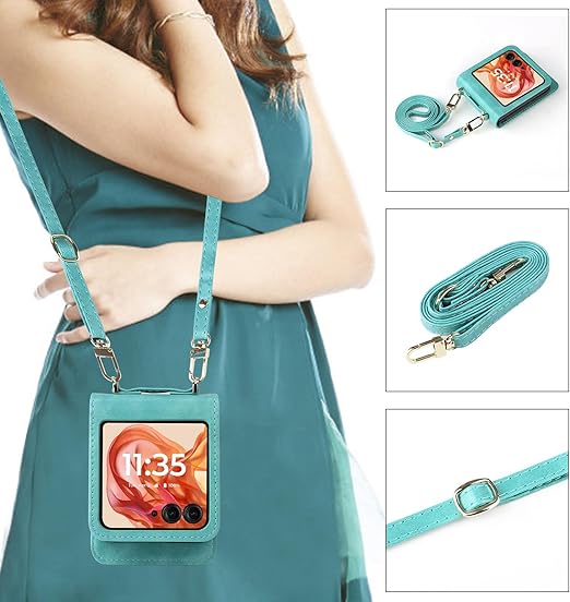 Motorola Razr 50/Razr 50S ケース Motorola Razr 50d ケース M-51E【Trocent】モトローラ Moto Razr 50/Razr 50S/50d スマホケース カード収納 肩掛け 斜め掛け 縄掛けケース ストラップ付き 長さ調整可能 取り外し可能 手帳型 折りたたみ携帯カバー 耐衝撃 高級PUレザー 全面保護(グリーン) a