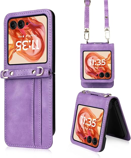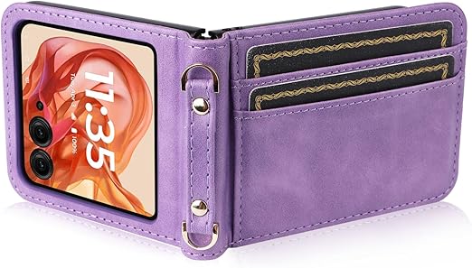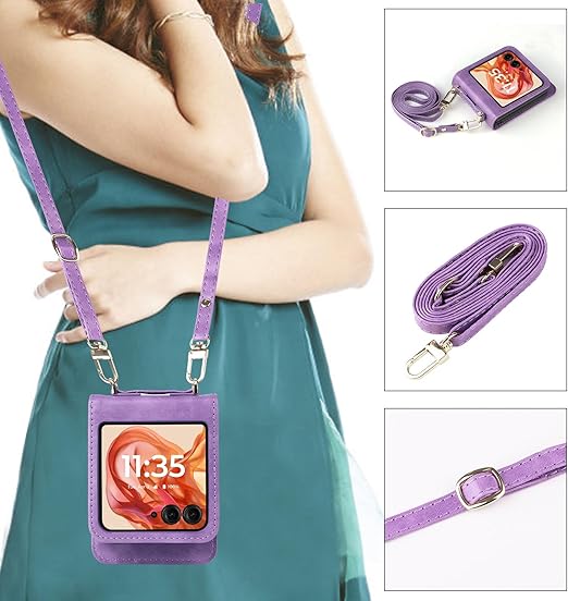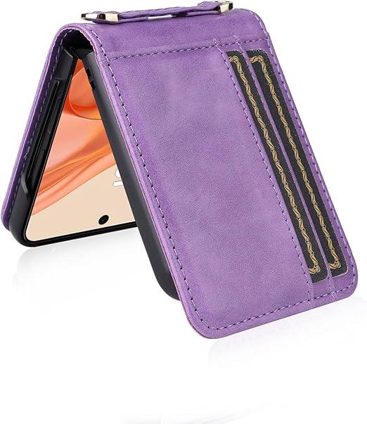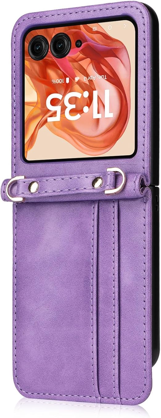 Motorola Razr 50/Razr 50S ケース Motorola Razr 50d ケース M-51E【Trocent】モトローラ Moto Razr 50/Razr 50S/50d スマホケース カード収納 肩掛け 斜め掛け 縄掛けケース ストラップ付き 長さ調整可能 取り外し可能 手帳型 折りたたみ携帯カバー 耐衝撃 高級PUレザー 全面保護(パープル) a