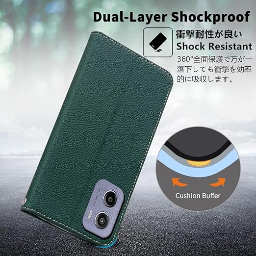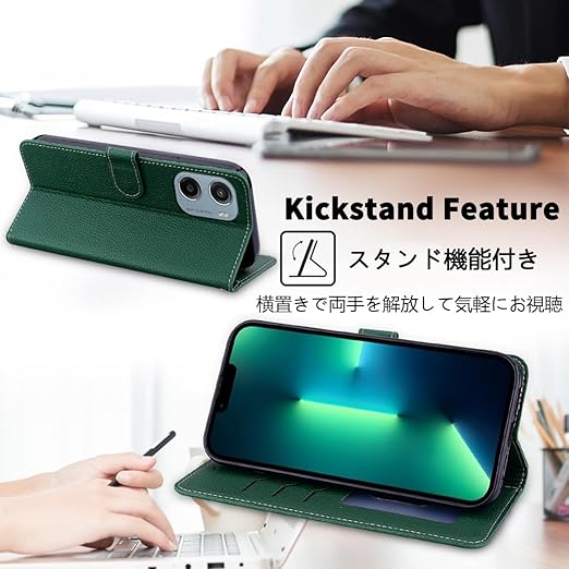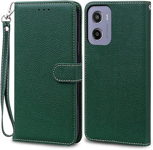 MOTOROLA用 Moto G05 ケース 手帳型 通用 モトローラ motoG05 SIMフリー 手帳 モトG05ケース モトローラg05 カバーモト 携帯カバー 耐衝撃 ストラップ付き 手帳 適用 case Cobeimisr ライチ紋 軽量 カードケース ストラップ スマホケース ダーク グリーン a