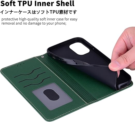 【特徴1:高品質PUレザー】軽量化のスマホケースです。外側カバーには滑り止めのライチ模様のPUレザーを採用します。内側のホルダーは柔軟なTPU素材を採用したソフトケースです。汚れにくくて指紋防止の特徴を持っております。耐衝撃の二重構造で落下の衝撃をうまく吸収します、本体をしっかりと守ります。