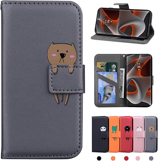 CASAFUNY Motorola Edge 50 Pro ケース 手帳型 お洒落 カバー motorola edge 50s pro ケース 手帳型 耐衝撃 PUレザー 携帯カバー モトローラ Edge50Pro ケース 軽量 モトローラ エッジ 50s プロ / 50 プロ 手帳ケース かわいい 動物柄 カバー おしゃれ カード収納 横置きスタンド機能 内蔵マグネット 落下防止-灰色のクマ a