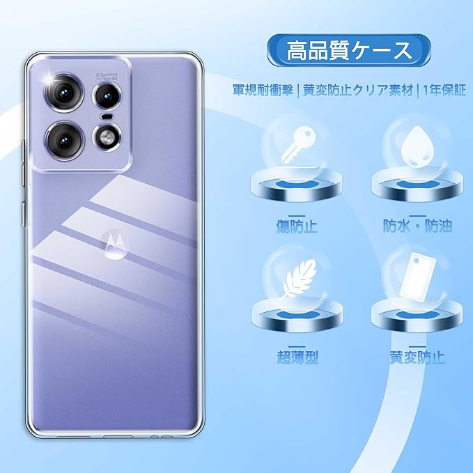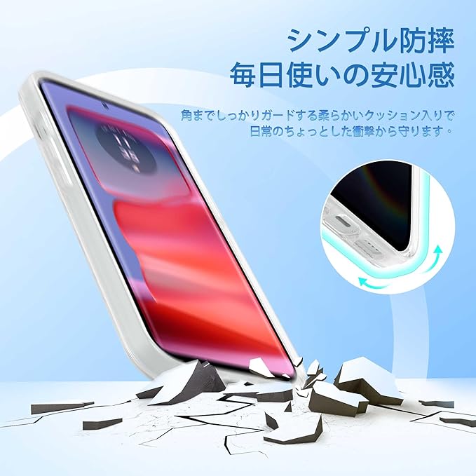 【高透明度】:クリアなデザインで、スマートフォン本来の美しさをそのまま楽しめます。黄ばみにくい素材を使用しているため、長期間使用しても透明感を保ちます