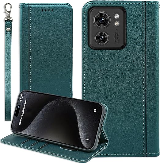 Motorolaに適合する MOTO Edge 40 neo ケース 手帳型 モトローラ Edge40neo SIMフリー ストラップケース モト カバー モトローラ エッジ 40 ネオ 手帳ケース MOTOROLA用 Edge40neo 手帳カバー ストラップ付きケース 手帳 適用 Cobeimisr CASE マグネット ストラップ スマホケース ダーク グリーン a