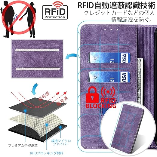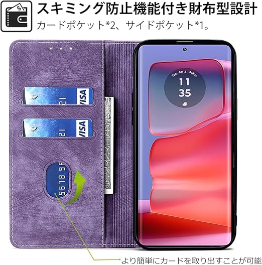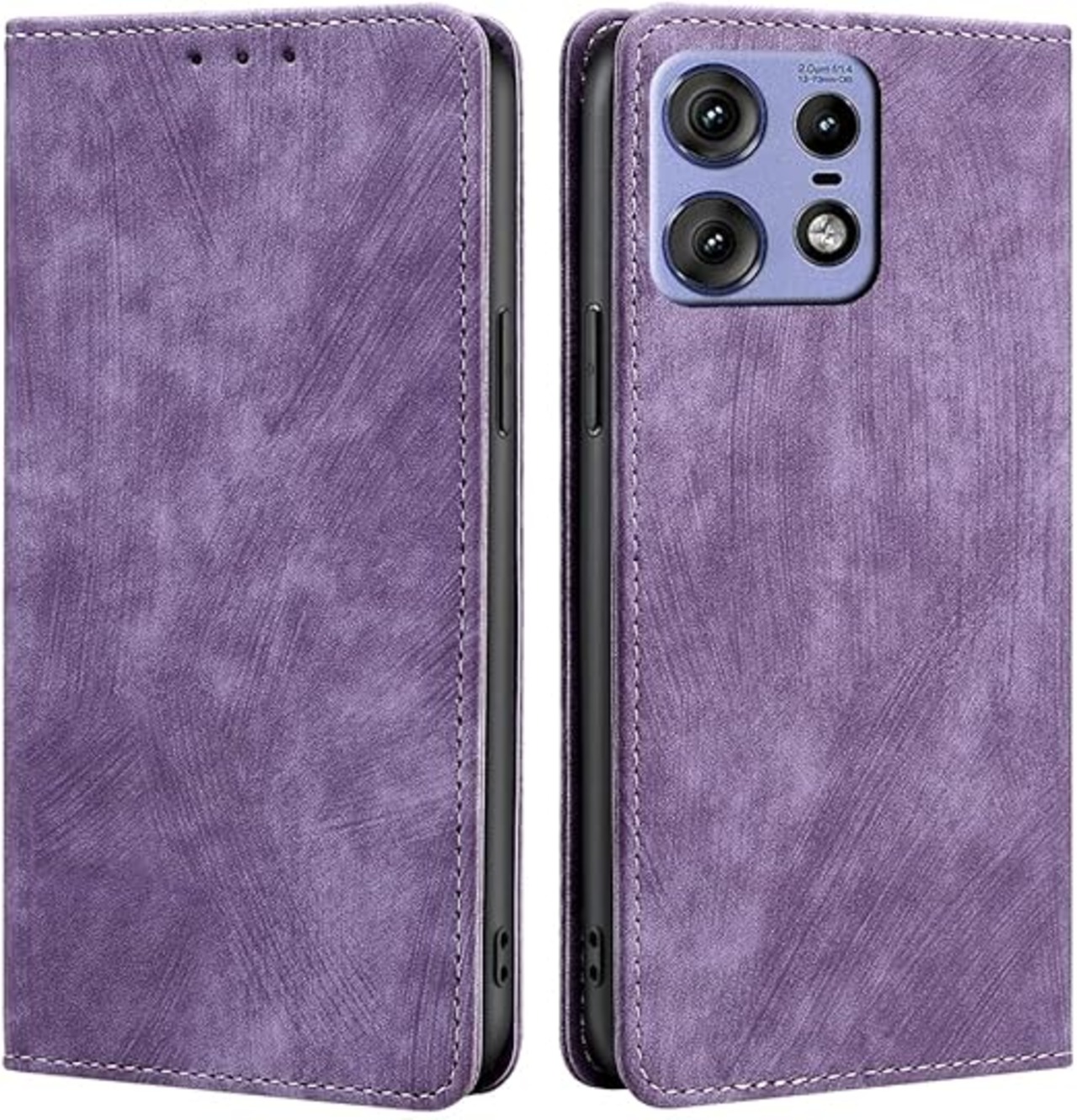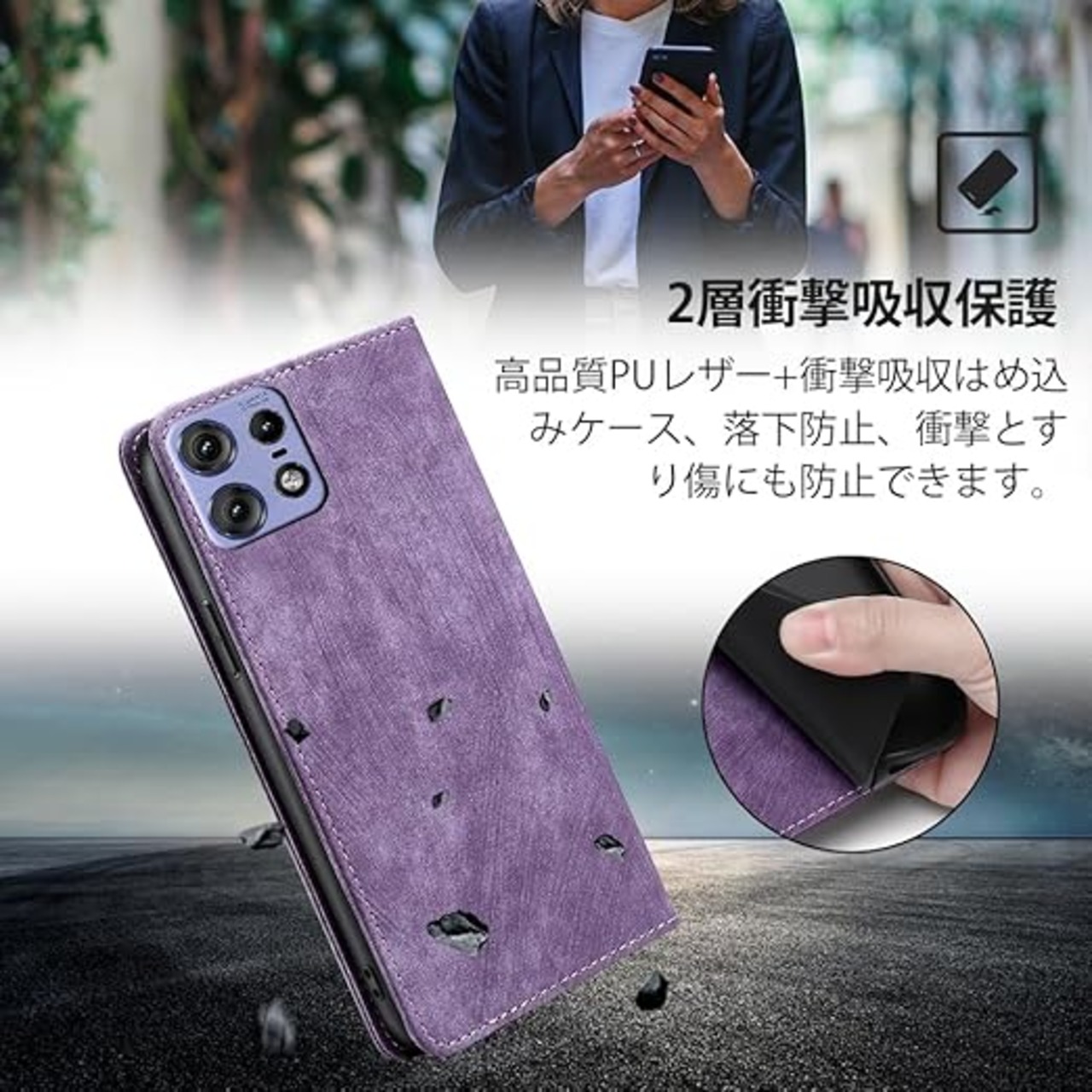 AiMaoo Motorola Moto Edge 50 Pro/Moto Edge 50s Pro 対応 ケース 防塵 耐衝撃 傷つけ防止 軽量 手作り PUレザー カード収納 RFID磁気防止 マグネット スタンド機能 ケース 手帳型 Motorola Moto Edge 50 Pro/Moto Edge 50s Pro 用 (パープル) a