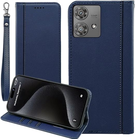Motorolaに適合する MOTO Edge 40 neo ケース 手帳型 モトローラ Edge40neo SIMフリー ストラップケース モト カバー モトローラ エッジ 40 ネオ 手帳ケース MOTOROLA用 Edge40neo 手帳カバー ストラップ付きケース 手帳 適用 Cobeimisr CASE マグネット ストラップ カード スマホケース ネイビー a