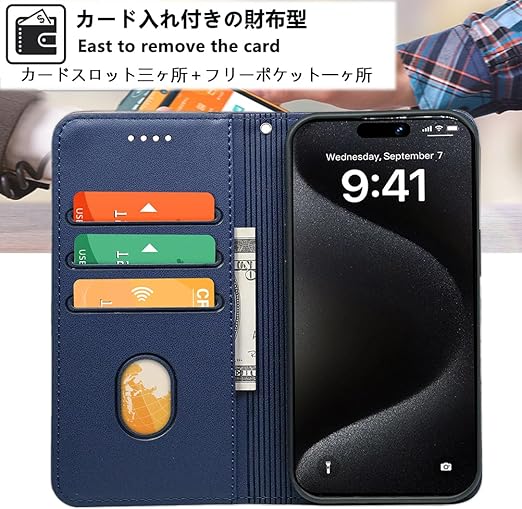 【機能性1:高品質PUレザー】外側のカバーには手触りがとても良い高品質の合成レザーを採用します。内側のスマホホルダーは柔軟なTPU素材を採用したソフトケースとなります。汚れにくくて指紋防止の特徴を持っております。耐衝撃の二重構造で落下の衝撃をうまく吸収します、本体をしっかりと守ります。